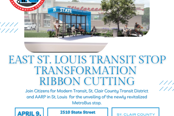 Make plans to join area dignitaries, project leaders and the community at-large as Citizens for Modern Transit, St. Clair County Transit District and AARP in St. Louis unveil the “Transit Stop Transformation” at theMetroBus stop located in front of Walgreens at 2510 State Street in East St. Louis. The grand opening event is set for …