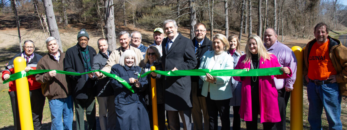 Representatives of St. Clair County Transit District (SCCTD) today joined with local officials, stakeholders and residents to celebrate the grand opening of the $4.3 million Tecklenburg Trail in Belleville. The new, 1.1-mile, paved bike and pedestrian pathway will connect residents in West Belleville, Ill., to the St. Clair County Transit District’s ever-evolving MetroBikeLink System that currently consists of more than 39 miles of interconnecting trails and bike paths in St. Clair County. As part of the ribbon cutting ceremony held for the new trail segment, SCCTD officials also